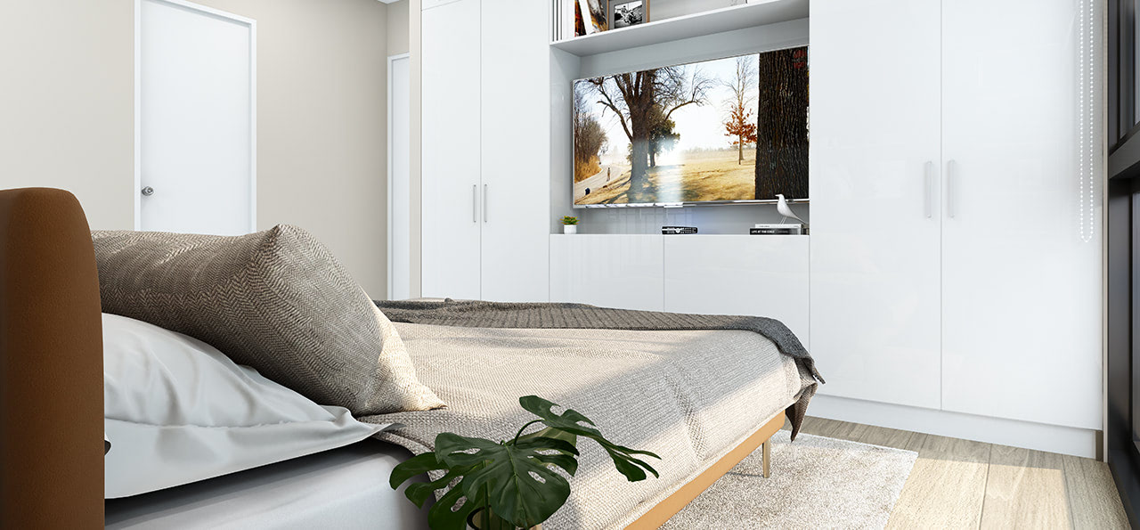 Principal y secundarios, pisos y paredes en porcelanato, muebles en MDF, lavatorios, aparatos y griferías ecoamigables.