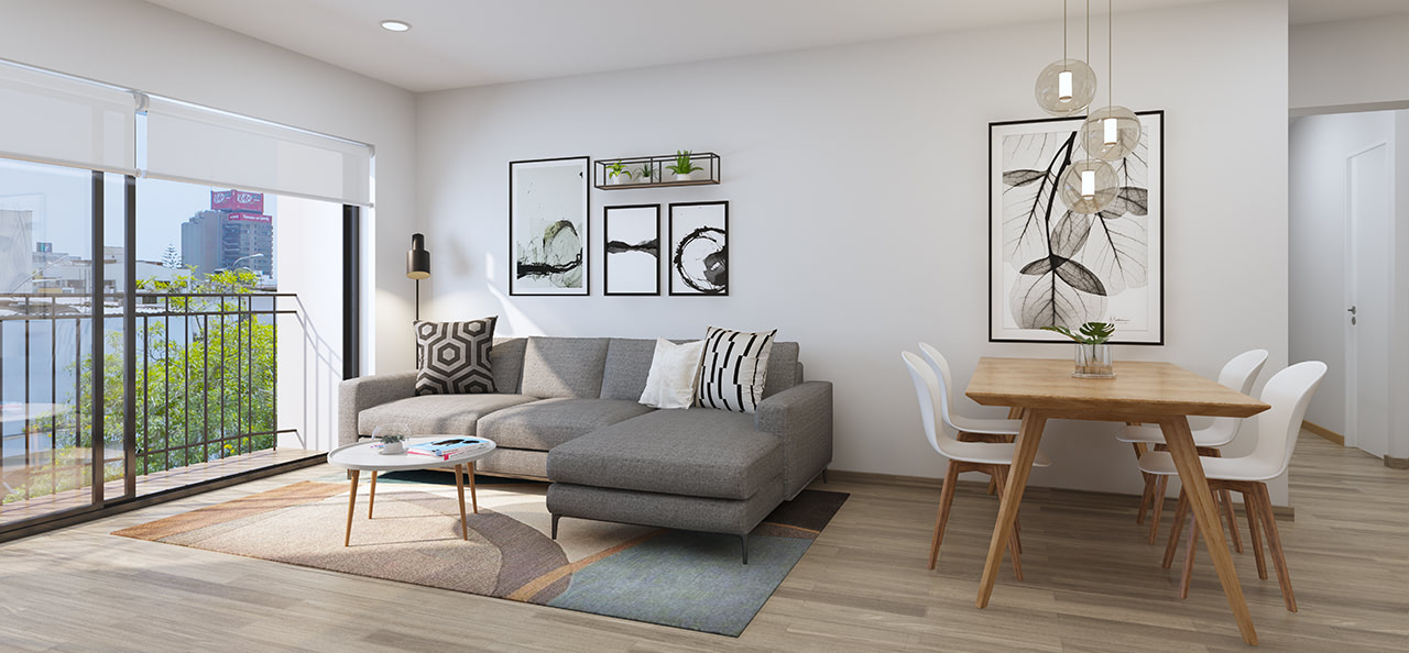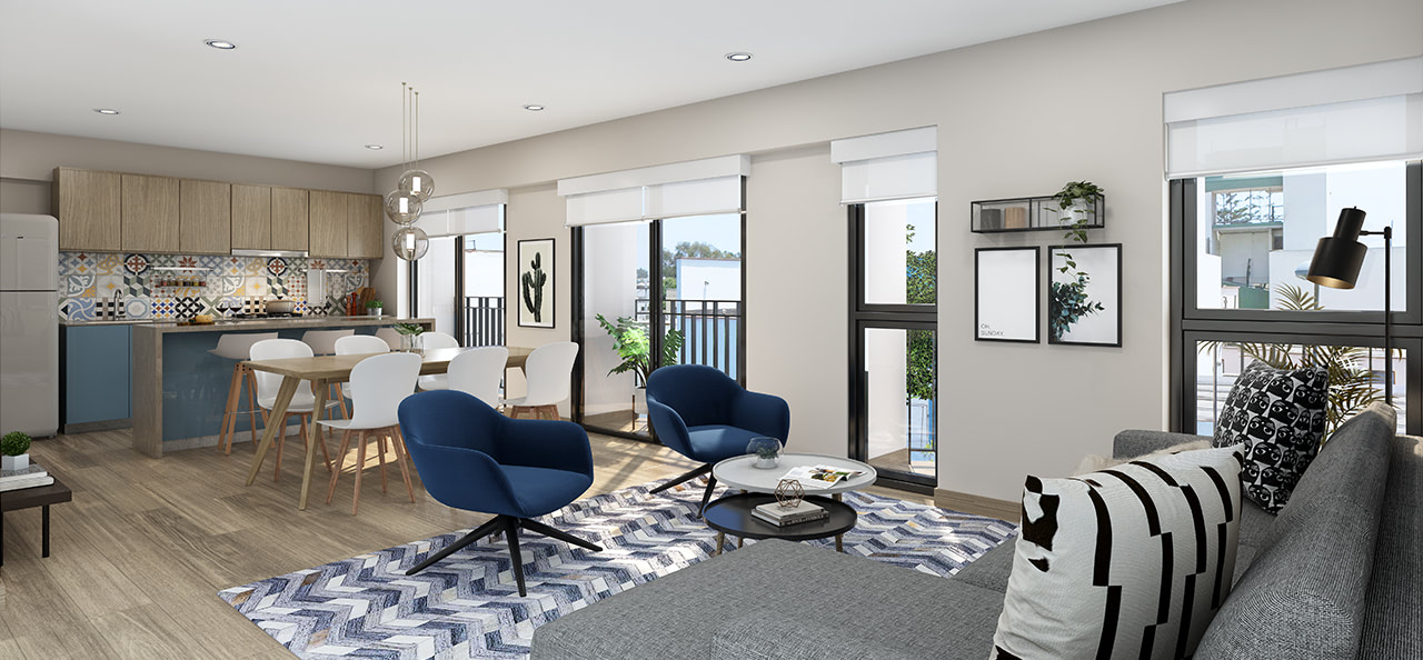 Acabados seleccionados por especialistas para crear espacios que sean experiencias. Un amplio lobby de ingreso con recepción y jardin externo que da la bienvenida a casa de la forma en que a nosotros nos gusta. Estamos presentes en cada detalle de diseño, estilo y experiencia.