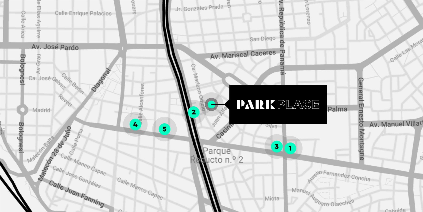Park Place se ubica en uno de los accesos naturales al centro de Miraflores, en una zona residencial del distrito más reconocido de Lima.